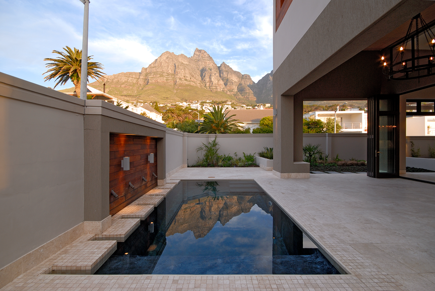 The house provides a 3 bedroom 4 bath and double garage on a constrained corner site and maximizes on vistas and views of the surrounds. A small plunge pool compliments the deep terraces which provide shade and together with the pool provide coll air flow through the house. The double volume entrance hall sports a tailor-made steel and timber stair which together with natural stone material, glass, steel and aluminum are contrasted with reeded ceiling panels, bespoke timber fully equipped showcase kitchen.